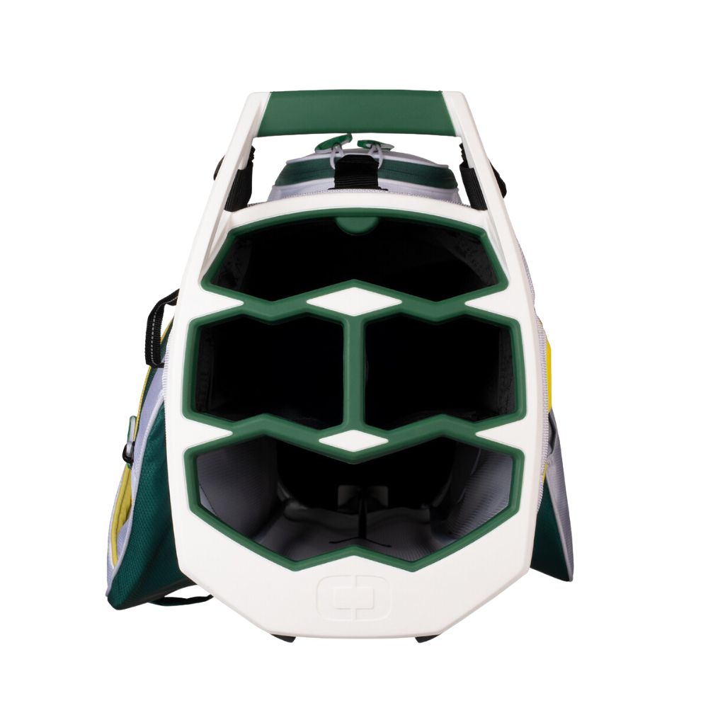 The Fuse Stand Bag blends performance, durability, and smart organisation. Its over-Moulded 4-way top, full-length dividers, and clippable straps make setup and carry effortless, while rugged materials and rapid-access pockets keep your essentials protected and within reach. Streamlined and durable, it’s built to keep up with every round.