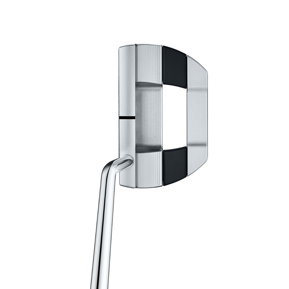 This updated rounded mid-mallet includes a mid-bend shaft for near-face balanced performance and features a new heel-toe inlay for enhanced two-tone alignment and higher MOI via an integrated 6061 aircraft aluminum sole plate. Its SCS face insert and chain-link face milling technology delivers soft sound and feel.